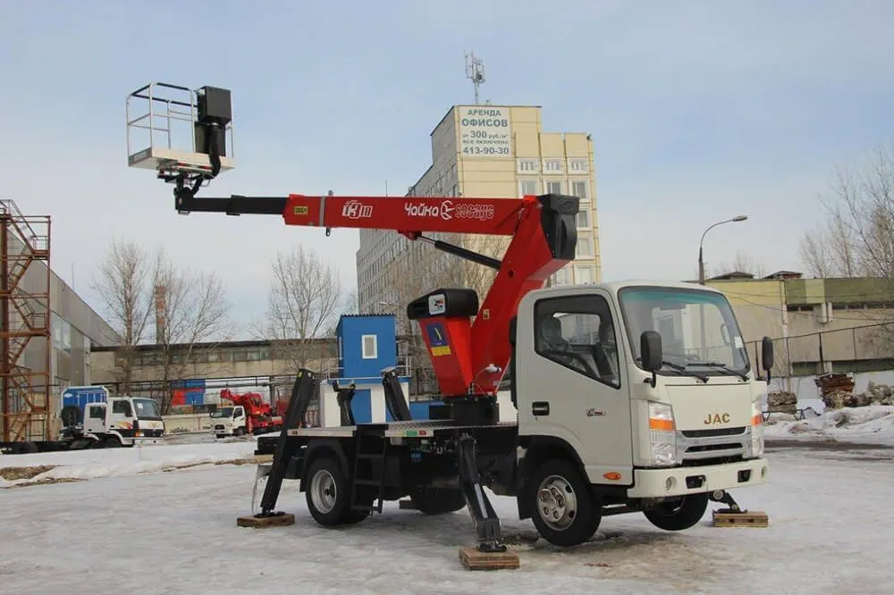 Автогидроподъёмник (АГП) на шасси JAC 75 подходит для высотных работ на базе грузового автомобиля. Китайская спецтехника адаптирована под российские условия эксплуатации. К тому же автовышка отличается невысокой ценой, что является серьёзным преимуществом.