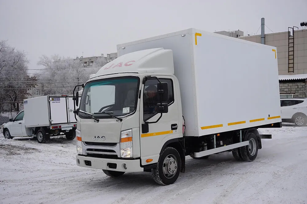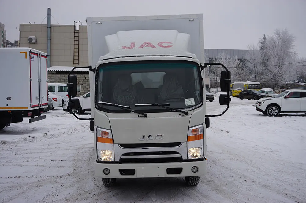 Для придания фургону прочности, предусмотрен П-образный профиль, имеющий уголки и панели. В число преимуществ авто входят комфорт и надёжность эксплуатации. Изотермический фургон JAC N 56 позволяет доставлять температурные грузы как на короткие, так и на дальние расстояния.