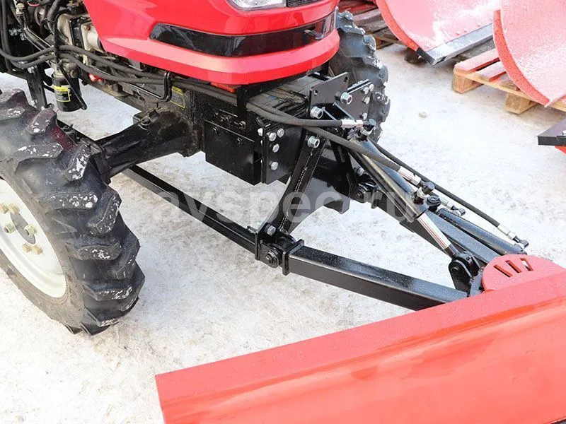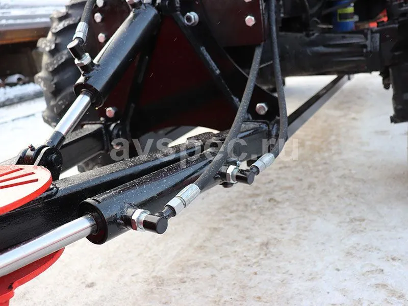 Ширина лопаты (отвала) составляет 2 метра, а высота - 750 мм. Угол поворота отвала составляет 30/30 градусов и производится гидравлическим способом, что позволяет эффективно очищать проезжую часть от снега и мусора. Резиновые технические пластины размером 500х40х125 мм обеспечивают более качественную уборку и защиту дорожного покрытия. Вес отвала - 130 кг. Он легко крепится на раму трактора спереди и может использоваться совместно с погрузчиком, не мешая его установке.